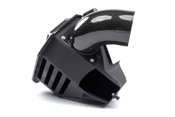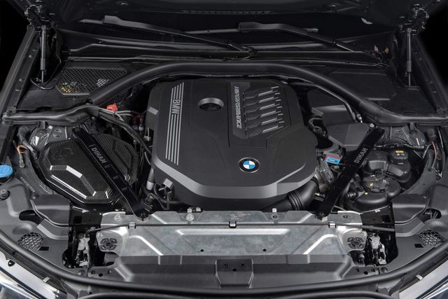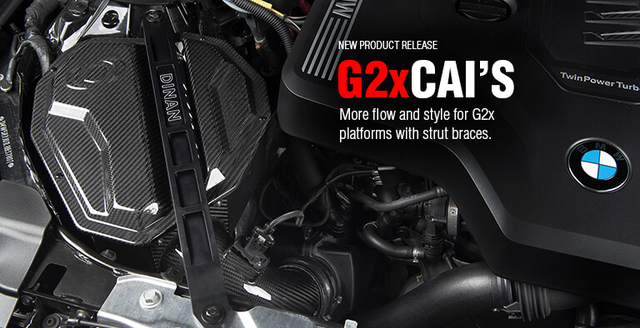 The M440i/M340i is an impressive car in terms of performance and style but that is not conveyed when viewing its lackluster stock intake system swaddled by seemingly unfinished strut braces. In stock trim, the M440i/M340i comes with a dry and lifeless air box housing a basic panel filter that is also accompanied by an intake resonator whose job it is to eliminate turbo/intake noises. The same noises that those in the performance world relish. Essentially BMW has seen fit to give M440i/M340i owners an air box that looks uninspiring, flows adequately but not ideally, and emits no noise. The exact opposite of what the platform exudes otherwise. The Dinan carbon fiber intake for the platform rights these wrongs and delivers a semi-open intake capable of flowing 58% more air than the stock system resulting in additional top end power and increased throttle response. At the same time revealing a more aggressive, sporty carbon fiber appearance, and an increase in sound courtesy of the removal of the intake resonator and implementation of a semi-open design. In order to achieve the gains in flow that set the Dinan intake system apart, the entire lower box of the system, and not just the lid, has been reworked and enlarged in an effort to make use of as much of the available real estate as possible within the engine bay. In turn, this allows a 40% larger, custom, free flowing filter to be housed within and maximum flow to be realized. However, a secondary inlet has always been desired by Dinan in order to effectively fill the volume of the enlarged air box and increased filter surface area. This desire led to a multitude of experiments being conducted on the effectiveness of a possible open-air inlet in the system. With different shapes, locations, and sizes of openings being tested, the goal was to ensure that the added secondary inlet did not cause any unwarranted side effects such as an increase in air temps in the system. This is commonplace with open-air intake systems where overheated engine bay air is employed in the intake tract. The results of these tests showed that the patterned openings present in the final iteration of the box located on the opposite side from the engine provided a perfect balance of additional volume to assist the factory inlet all the while not causing an increase in turbo inlet temperatures. This was the case regardless of testing conditions (single/multiple gear pulls, constant speed, 0-100mph runs, etc.). With more air being pulled into the system, throttle response is improved and additional power is realized in the form of max gains of +9 WHP / +8 ft-lbs of torque. The secondary air inlets also allow the intake system to be more audible so the turbo spool and BOV can be appreciated. A stark difference from Dinan's traditional fully sealed systems where induction noise is not nearly as recognizable. Not to be outdone by the increased power and sound, the outwardly visible system is made of immaculate carbon fiber so the under the hood appeal is vastly improved over its drab and utilitarian beginnings. A worthy piece to add to an already impressive vehicle. NOTE: For those who already own a non-brace compatible Dinan intake (D760-0052) but now want to run braces without purchasing a completely new intake kit you can order the retrofit kit (lid and hardware) separately for $84.95. To do so contact the Dinan tech sales department at 1-800-341-5480 and request part number D763-0185. Features and Benefits: (G2x x30i Cold Air Intake):